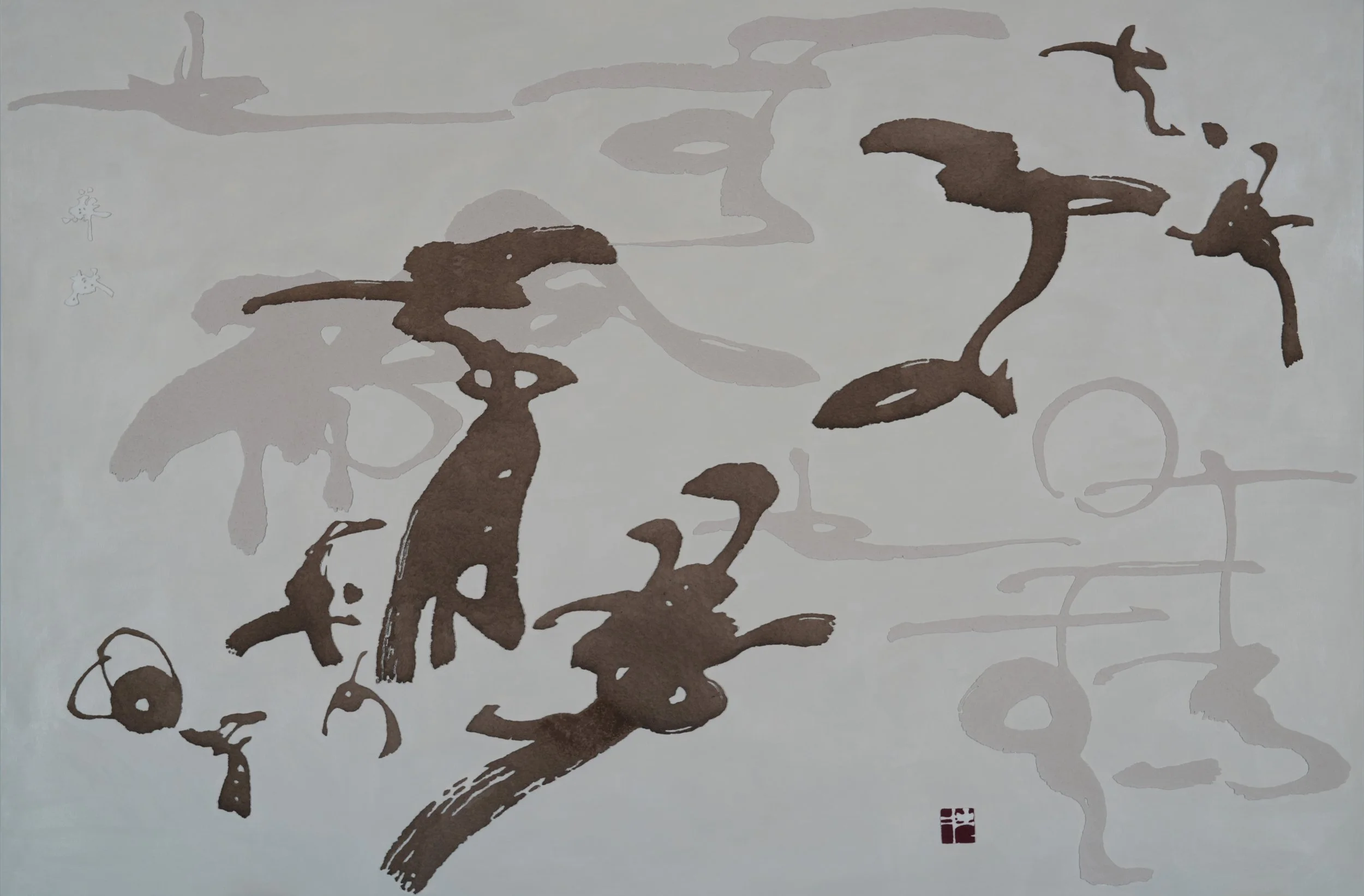 A verse of “Soaked in rain on the way to Lake Sha ” Lyric to the tune of “Ding Feng Bo” by Su Shi (1037–1101) Multimedia on Canvas 163 x 244 cm (64 x 96 in) 2025