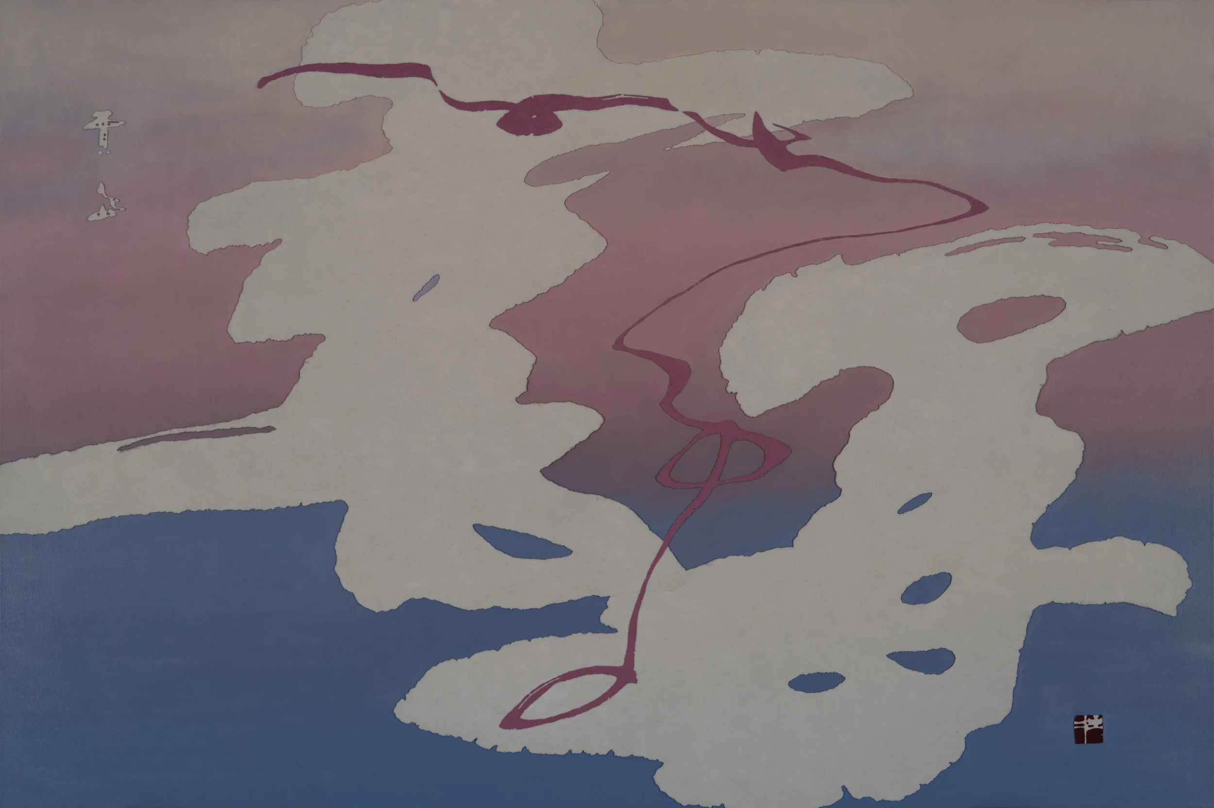 A verse of “Seeking but Not Meeting the Recluse” by Jia Dao (779-843) Multimedia on Canvas 163 x 244 cm (64 x 96 in) 2025