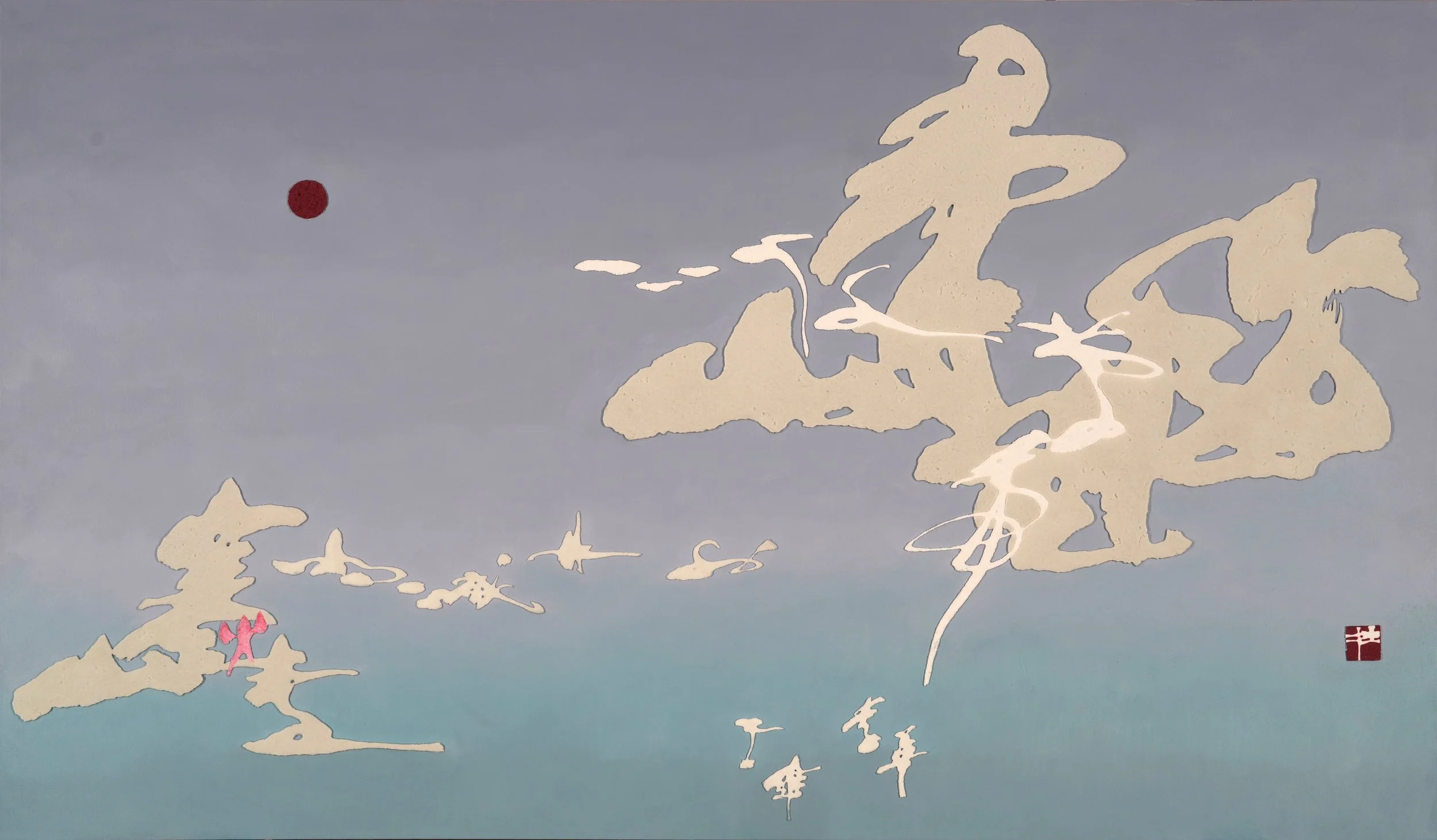 A verse by Wang Wei(701-761)and excerpt of a prose by Li Hua (715-766) Multimedia on Canvas 137 x 243 cm (54 x 96 in) 2024